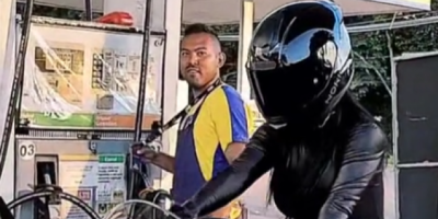 U jednom trenutku je skinula kacigu ispod koje se pojavila prelepa devojka duge crne kose i muškarci su zanemeli. Radnih na pumpi hipnotisano je gledao u nju i nije mogao da skine pogled sa atraktivne crnke.