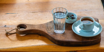 Nije im se dopadalo to što kašičicu uprljaju penom, a potom takvu moraju da je stave na rub tacne. Mnogi su tada taj potez shvatali nekulturnim i nimalo elegantnim, pa su ugostitelji uveli čašu vode koja se dobija uz kafu. Njena svrha je bila da gosti mogu da isperu prljavu kašičicu, a tek onda je spuste na tacnu.