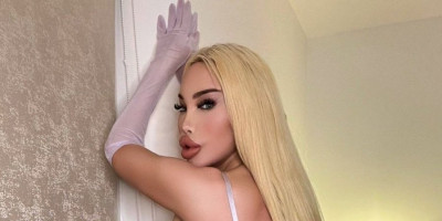 Ona je pozirala u providnom lila korstetu sa halterima, dok su joj ogromne silikonske grudi ispadale na sve strane, a halteri pucali pod brutalno velikom zadnjicom u tangama.