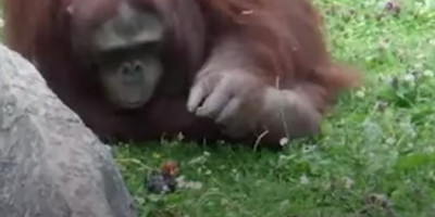 Divni orangutan je primetio da se ptičica davi u njegovom bazenu i pronašao je nežni list kojim ju je primakao obali, a onda izvukao na bezbedno.