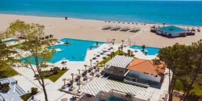 Ultra All Inclusive Rezort, čije ime Azul se prevodi kao azurna boja, ili plavetnilo, prostire se na čak 17 hektara. Udaljen je svega 5km od samog centra Ulcinja i ima direktan izlaz na plažu sa sitnim peskom. Elegantni i komforni Azul Beach jednako je primamljiv parovima, porodicama sa decom ili većim društvima prijatelja, zahvaljujući širokoj ponudi sadržaja u sklopu kompleksa. Hotel poseduje čak osam bazena koji su tematski raspoređeni kroz čitav kompleks, među kojima je i najveći infinity bazen u Crnoj Gori, kao i bazeni za decu.
