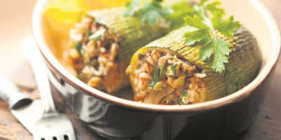 Priprema: Tikvice presecite napola i pažljivo izdubite kašičicom. Neizdubljeni deo isecite ravno tako da svaka polovina može da stoji uspravno. Propržite naseckani luk, dodajte mleveno meso, sipajte oko 50 ml vode i kratko prodinstajte. Dodajte pirinač i nastavite da dinstate oko 10 minuta. Sklonite s vatre, malo ohladite i dodajte jaje, te začinite. Napunite tikvice i uspravno ih stavite u posudu. Sipajte bujon da gotovo pokrije tikvice i kuvajte oko 25 minuta. Pred kraj napravite laganu zapršku od brašna umućenog s malo hladne vode i poslužite uz pavlaku ili kiselo mleko.