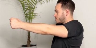Ispravite ruke ispred sebe i vrtite ramenima unazad.