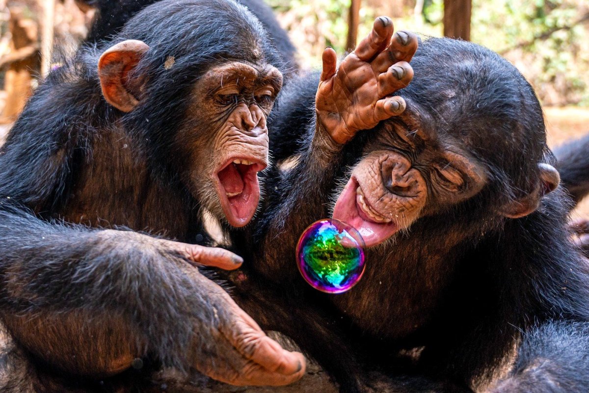 Upravo zato su ovi trenuci igre toliko dragoceni. Oni pokazuju koliko su šimpanze inteligentne, ali i koliko im je potrebno malo da bi pokazale emocije nalik ljudskim, iznenađenje, smeh, uzbuđenje.
