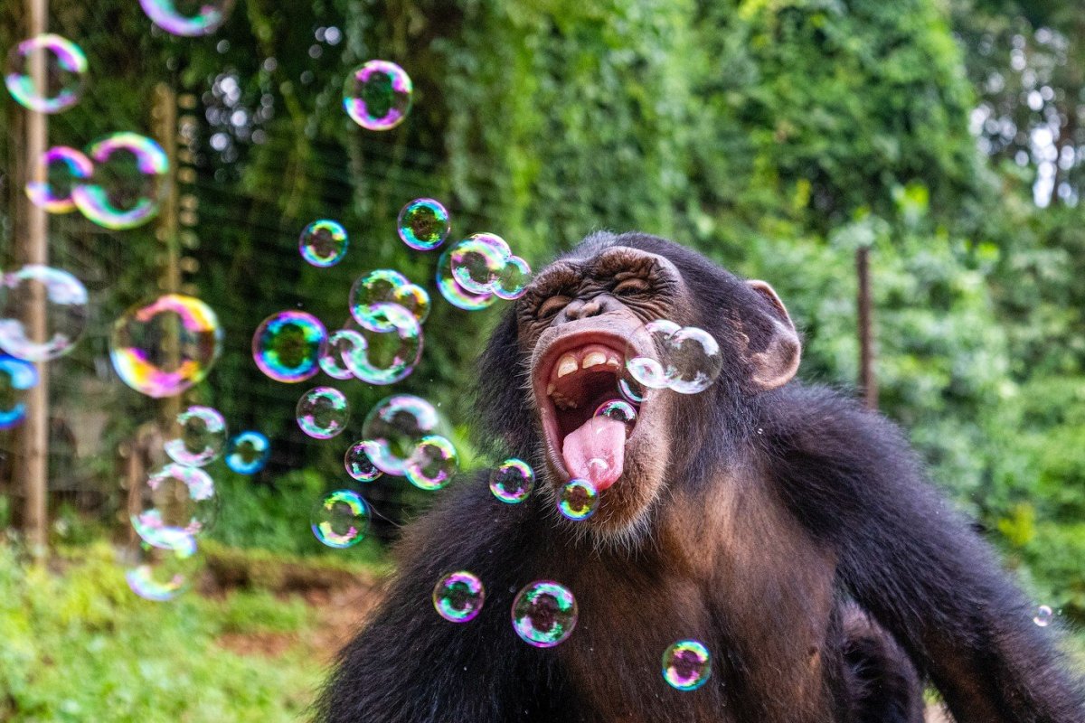 Jednostavni baloni od sapunice na trenutak su pretvorili svakodnevicu u čistu magiju, a šimpanze su pokazale da je radost univerzalni jezik koji svi razumemo.