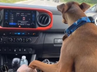 Radi se o tome da se pas vozio na suvozačevom mestu, jasno tražeći od svog vlasnika da ga drži za šapu. Čim je čovek spustio ruku na menjač, pas ga je blago zagrebao, pokazujući da treba da vrati ruku gde je i bila.