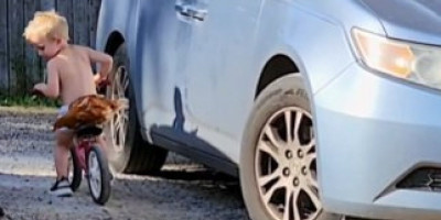 Koliko su oni bliski i koliko je dečaku stalo do koke, pokazuje ovaj presladak snimak. Dečak je uspeo da stavi kokošku na bicikl i da je tako provoza po dvorištu.