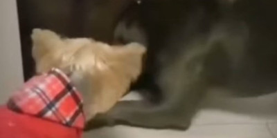 Na snimku na koji smo nedavno naišli, vidi se kako mali pas "brani" svoju kućicu od većeg cimera.
