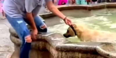 Jedan pas je rešio da se rashladi ni manje ni više nego brčkanjem u fontani.