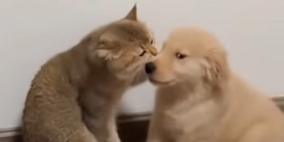 Radi se o štenetu zlatnog retrivera i maloj mački, kojima je jedini cilj u životu, reklo bi se, da razmene što je više poljubaca.