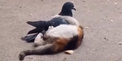 Golub je prišao da pozdravi macu, koja je ležala na trotoaru, a ona mu je uzvratila pravim, jakim zagrljajem. Ono što je dodatno zanimljivo, jeste da golub uopšte nije pokušao da se izmigolji, već je ostao uz nju.