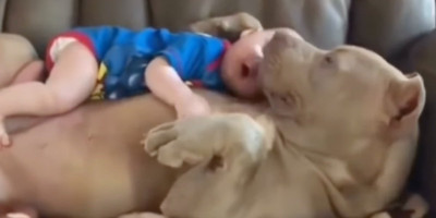 Zbog toga se verovatno mnogi i iščuđavaju kada naiđu na snimak poput ovog, gde veliki, "strašni" pas pokazuje ništa drugo do nežnost i ljubav i to prema jednoj bebi.