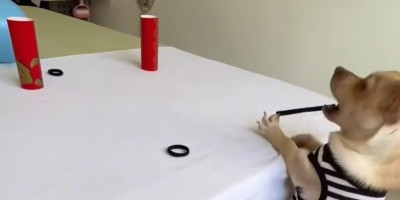 Jedan pas je postao opšte poznat na društvenim mrežama, zbog toga što sa izuzetnom preciznošću koristi tzv. praćku. Zapravo, pred njim je postavljeno nekoliko predmeta, a zadak je da nategne gumicu (praćku) i pogodi svaki od njih.