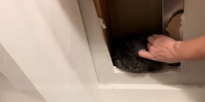 Odlučili su da je pomaze, pa se promeškoljila, a potom i izašla iz zida. Ispostavilo se da je reč o mački, za koju su kasnije otkrili kako je kroz neku od rupa na tavanu upala u prostor između zida i nije mogla da se izvuče sama. Buka koju je par čuo dolazila je od njenih pokušaja da se oslobodi, ali joj to nije baš polazilo za rukom.