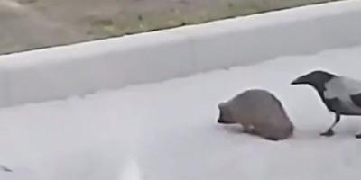 Vozač automobila je usporio na putu, kako bi propustio da prođu jež i svraka. I ovo možda ne bi delovalo ništa neobično, da zapravo svraka nije kljuckala ježa, takoreći gurajući ga da što pre pređe ulicu.