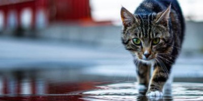 Crno-bela maca je prošetala pistom, a zatim pokušala da se igra sa jednom od manekenki. Posebno je zanimljivo delovalo to što je maca bila u tonu sa crno-belim odevnim komadima koje su nosile manekenke.