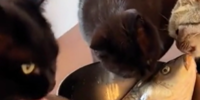 Naime, na snimku koji je postavio nepoznati autor vide se tri mačke okupljene oko veće činije u kojoj se nalazi živa riba, a koju sa slašću ližu posmatrajući sa svakim pokretom jezika kako ona reaguje.