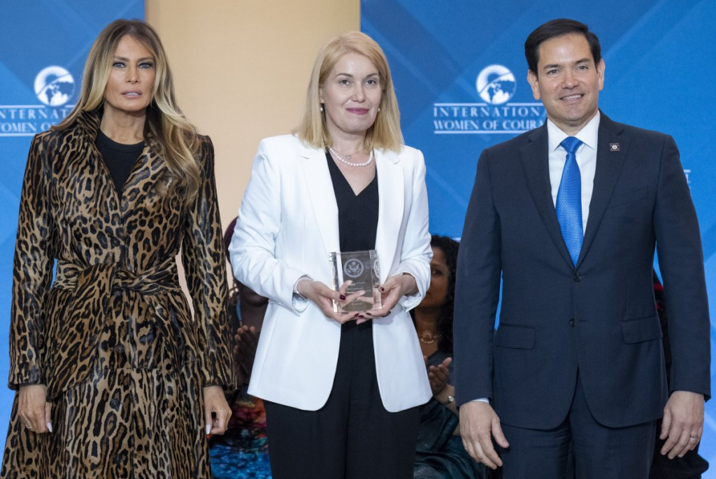 Melanija Tramp je govorila na 19. dodeli međunarodnih nagrada "Women of courage" ("Hrabre žene") u Stejt departmentu u elegantnom i atraktivnom kaputu savršenog kroja.