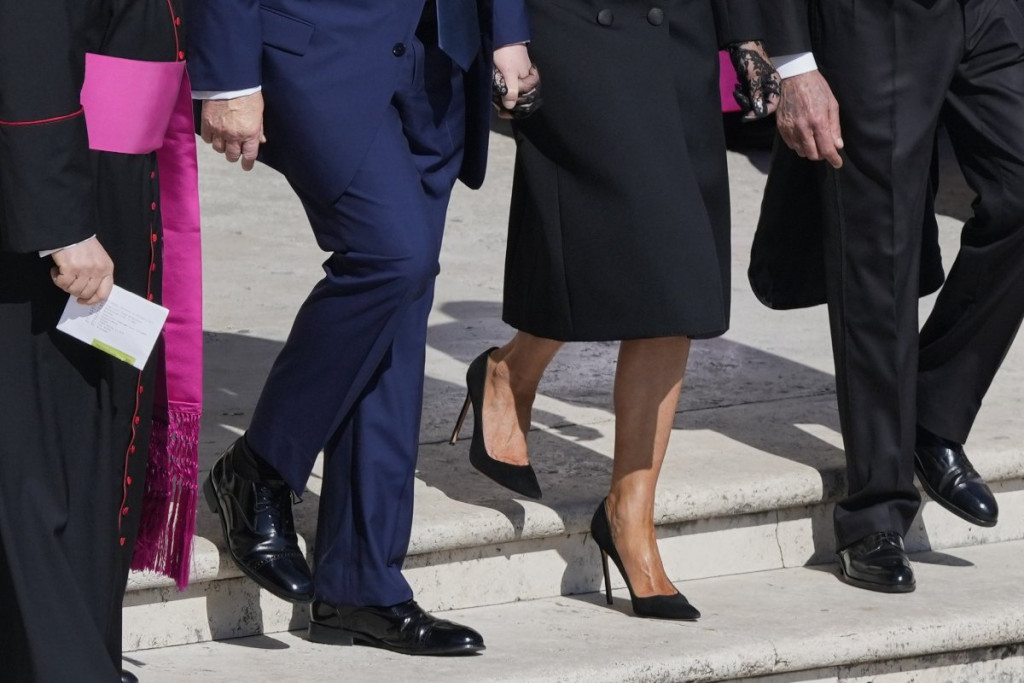 Melanija Tramp je pokušala da se pojavi u "inkognito" izdanju kako ne bi skretala pažnju na sebe, to ipak nije uspela. Njen modni izbor za sahranu papa Franje je ipak postao tema u medijima, a sada je akcenat "pao" na njenu obuću. Naime, Melanija Tramp se pojavila u izuzetno visokim potpeticama, što i nije toliko čudno kada je ova Slovenka u pitanju, ali postavlja se pitanje da li je to po protokolu?