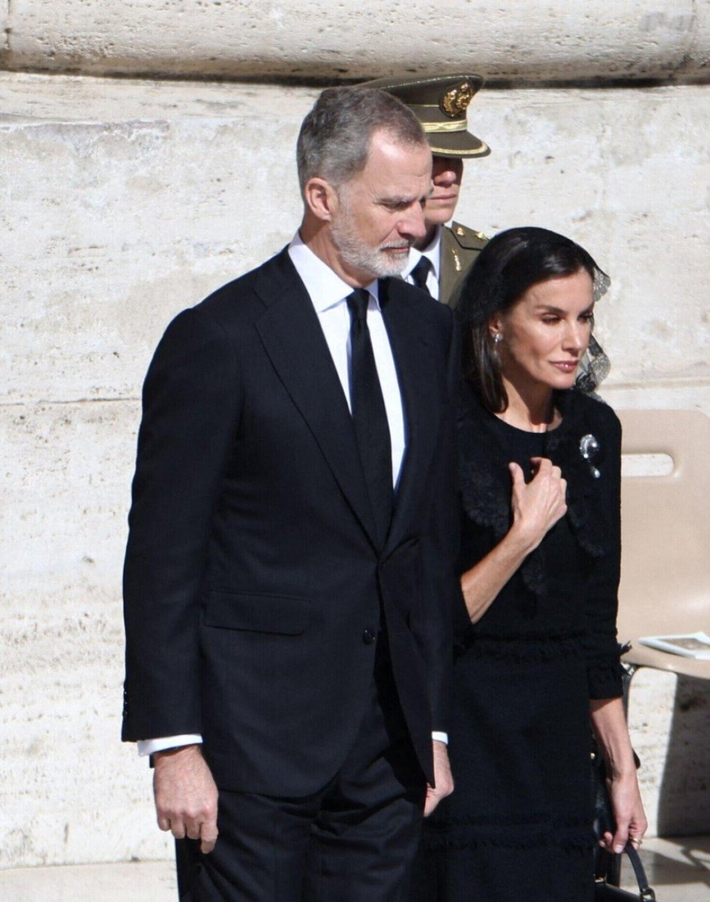 U ruci je španska kraljica nosila crnu tašnu, dok joj je na glavi bio mrežasti crni veo, kao izraz žalosti za papom Franjom.