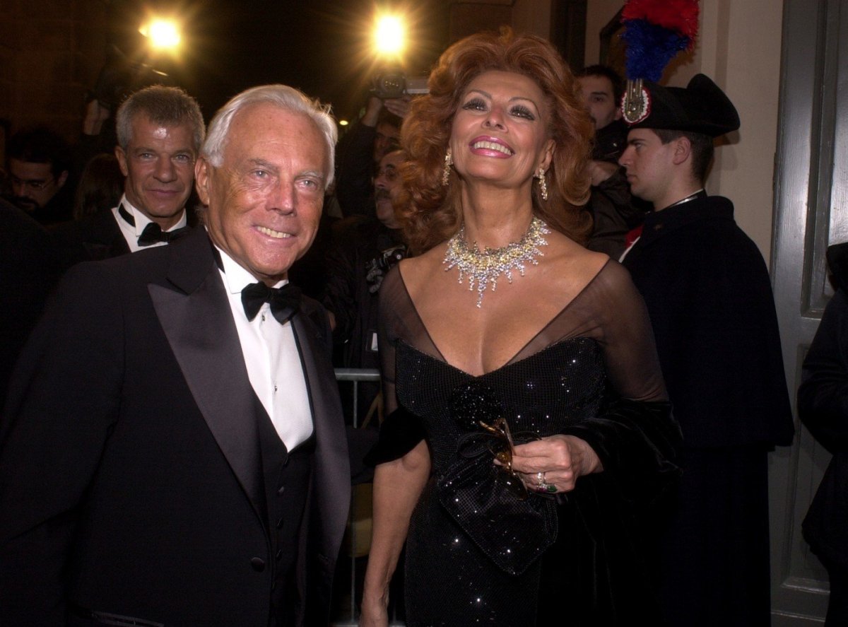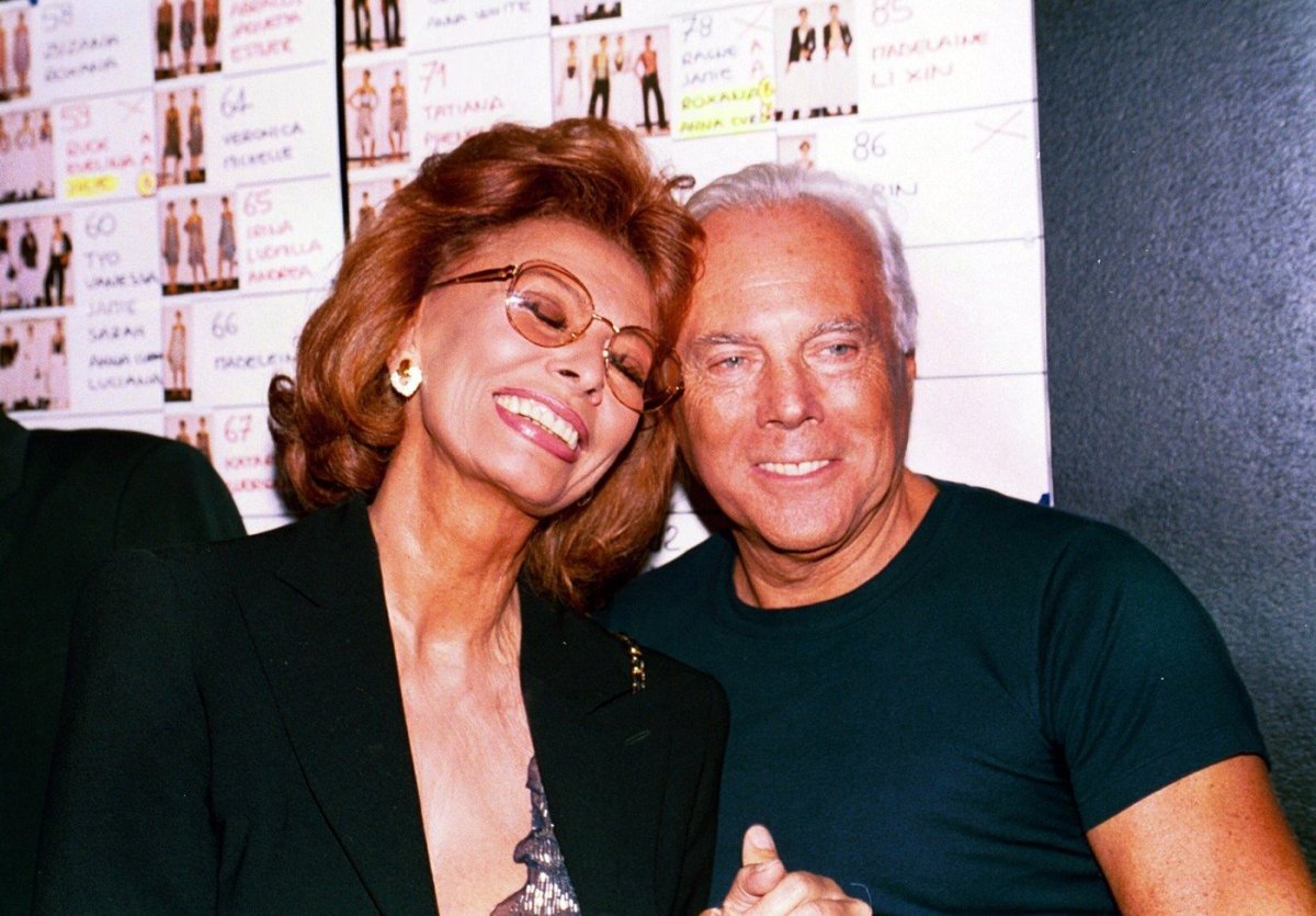 Sofija Loren je često bila njegov muza, izuzetna žena sa stilom koji odoleva vremenu. Često je nosila Armani kreacije na događajima, uključujući glamurozni srebrni autfit iz linije "Prive" kada je proslavila svoj 90. rođendan.