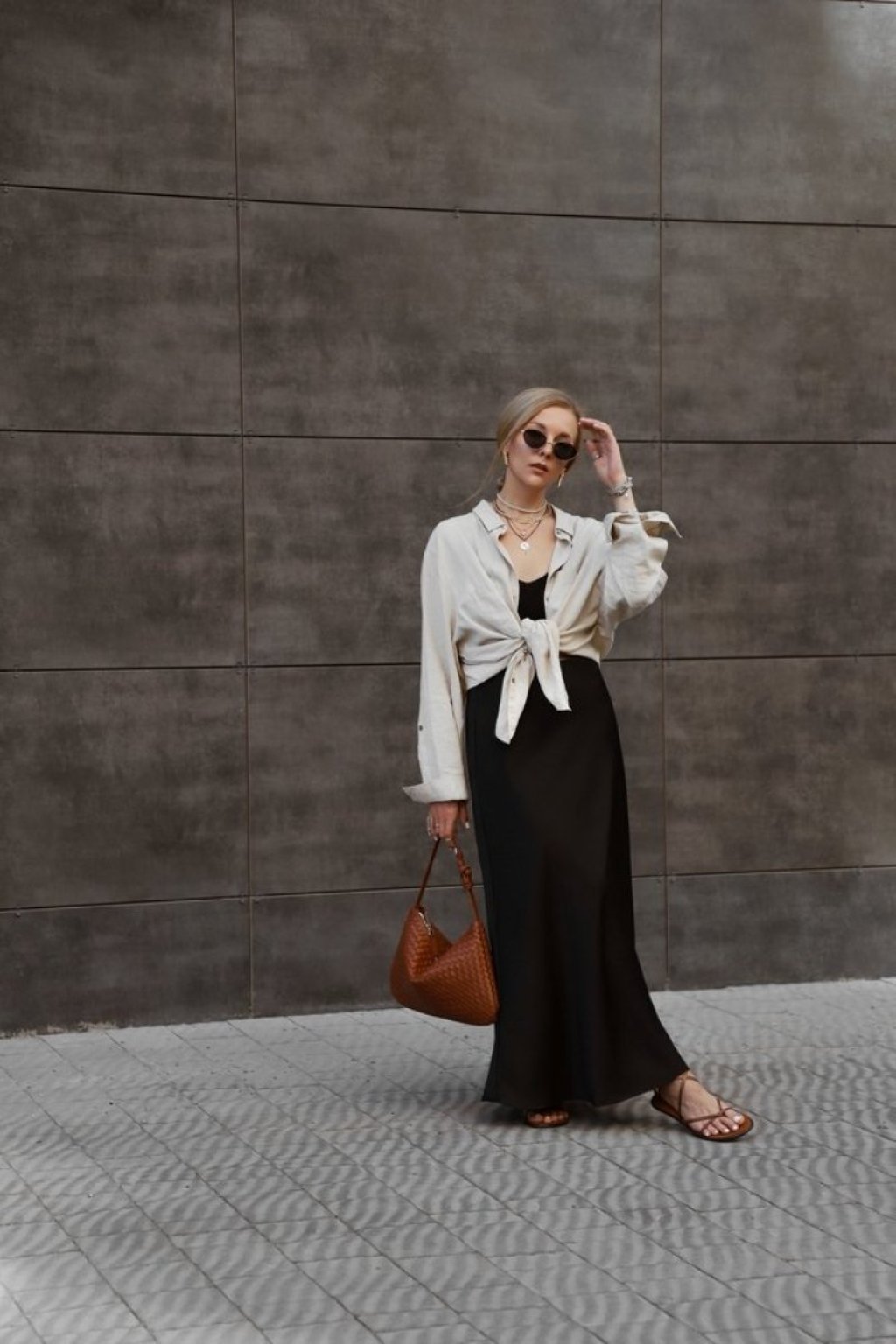 Još jedan način da maksi haljine dobiju modni dašak jeseni jeste da „zadržite letnje siluete, ali promenite boje". Izaberite dugu, lepršavu maksi haljinu u jesenjim nijansama poput narandžaste, žute ili maslinaste. Na hladniji dan možete preko maksi haljine obući kardigan ili laganu jaknu za elegantan, ali vremenski prikladan izgled.