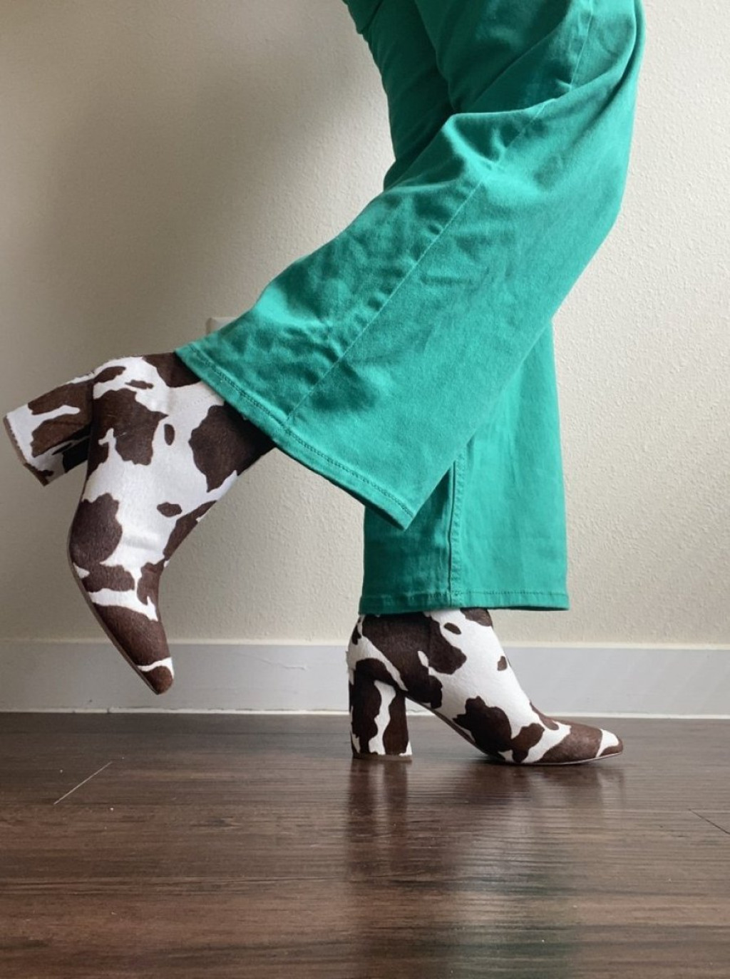 Dovoljno je baciti pogled na fotografije ulične mode ili profile poznatih stilista da biste videli kako kravlji print dominira — čizme uparene s velikim blejzerima, mokasine uz ravne farmerke ili klompe koje se odlično slažu s pletenim haljinama.