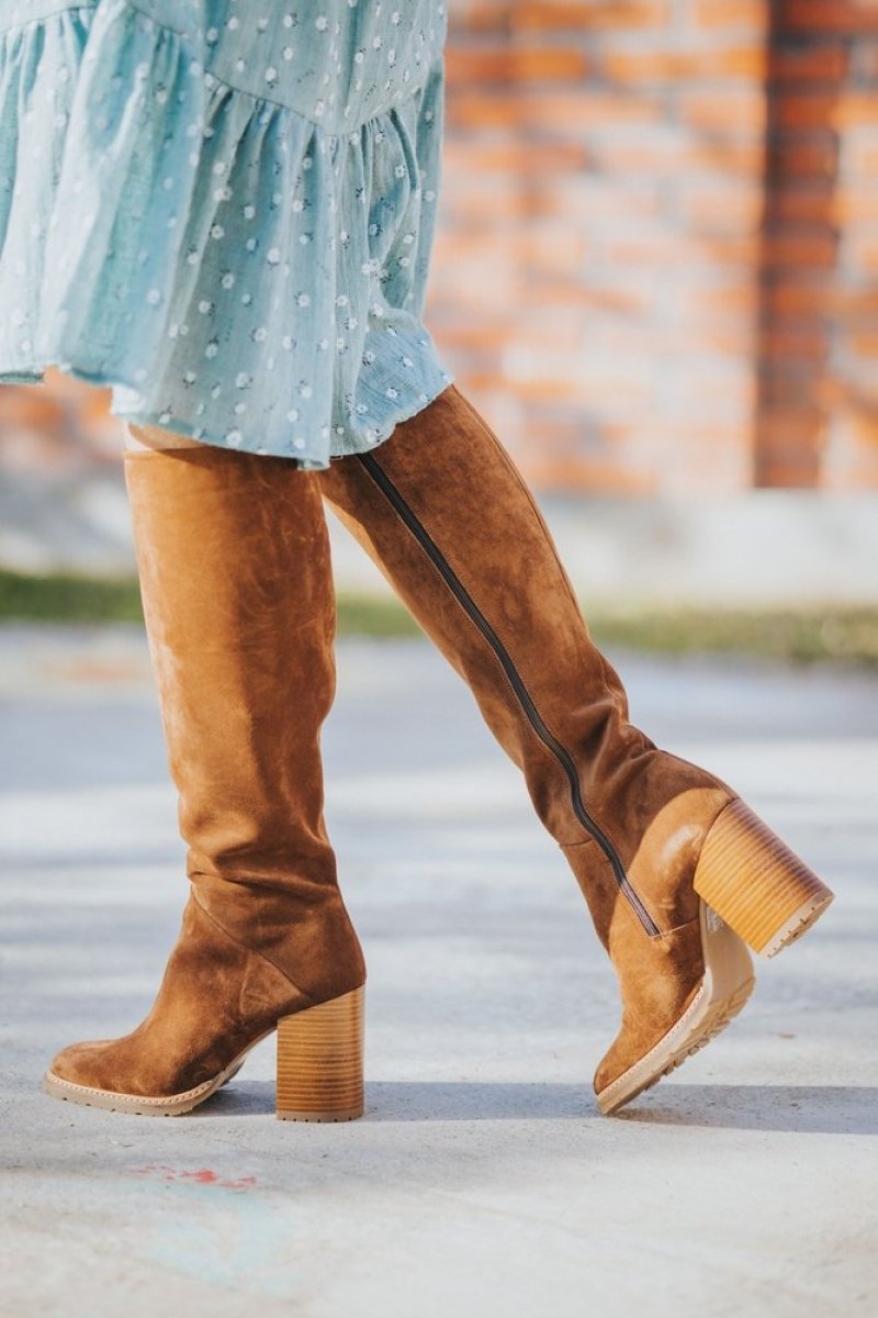 U dnevnim kombinacijama, braon antilop čizme savršeno se slažu sa pletenim džemperima, suknjama od tvida i dugim mantilima.