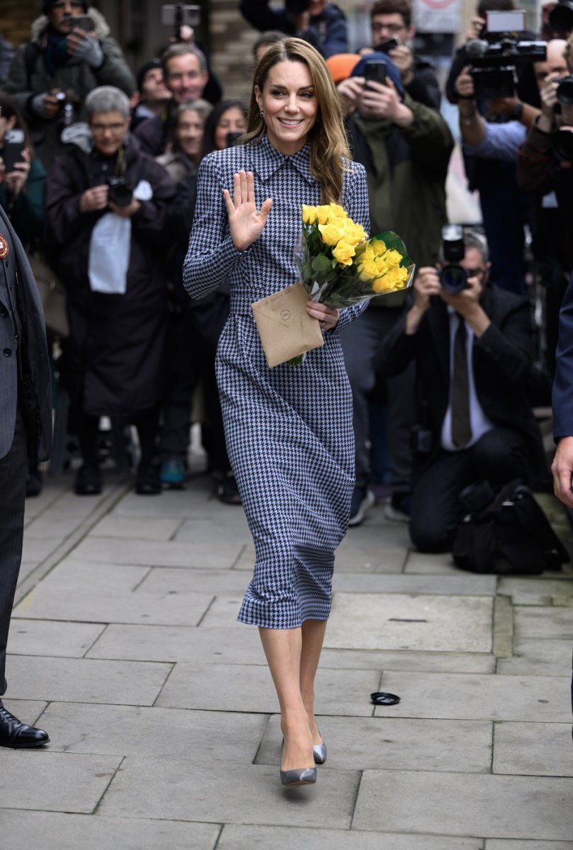 Princeza Kejt je svoju haljinu stilizovala savršeno. Opredelila se za jednostavne, ali efektne srebrne (ili sive) salonke koje prate boju dezena i vizuelno produžuju liniju nogu.