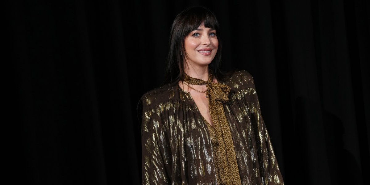 Zvezda filma "Pedeset nijansi siva" nosila je prozirni smeđi ogrtač sa zlatnim šljokicama i perjem, uparen sa senf bluzom sa mašnom i printom poput žirafe, a sve je začinila čipkanim šortsem i prozirnim hulahopkama sa romantičnim printom ruža.