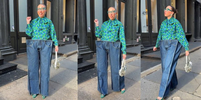 Kombinaciju je zaokružila upečatljivim minđušama brenda Kenet Dž. Lejn i zelenim naočarima marke Dženi. Ipak, bez obzira na pažljivo birane detalje, najveću pažnju ukrao je sam kroj pantalona.