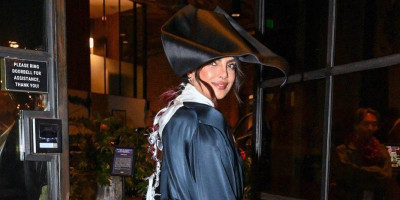 Prijanka je dodatno upotpunila izgled belim, elegantnim štiklama sa crnim detaljima na prednjem delu, koje su savršeno balansirale njen celokupni stajling. Njen veliki crni satenski šešir, sa dramatičnim oblikom koji je prekrivao skoro celo lice, zasluženo je postao centralni deo izdanja, izazivajući poglede i naglašavajući njen modni stav.