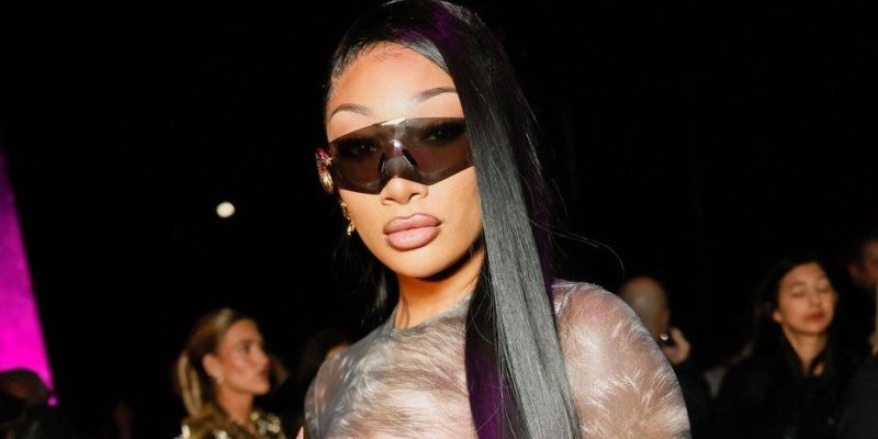 Roberto Kavali je poznat po izazovnim, senzualnim siluetama u kombinaciji s eklektičnim printovima, najčešće životinjskim. Meganina potpuno providna haljina dugih rukava spojila je ta dva prepoznatljiva koda kuće, iako je tačan izbor životinje i dalje predmet rasprave.