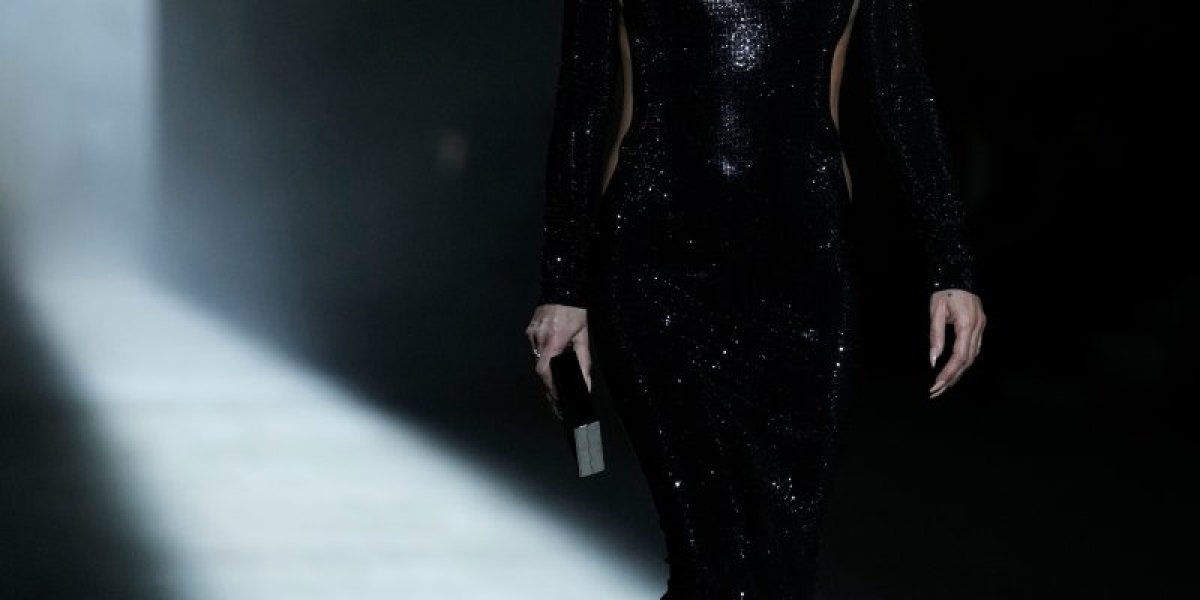 Stajling je dopunila dijamantnim nakitom, klač torbom, razbarušenom kosom i omiljenim "zamagljenim očima". Sama kolekcija delovala je haotično, ali sa senzualnim tonom, dominiraju koža, čipka, krzno, dok crna boja naglašava detalje u bordo i zlatnoj.