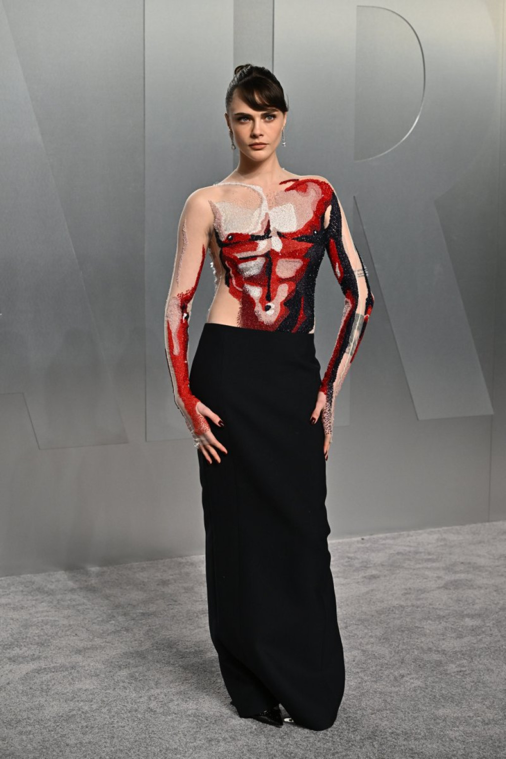 Klara je prošetala crvenim tepihom u dramatičnoj kombinaciji elegantne crne suknje i gotovo iluzionističkog gornjeg dela koji je izgledao kao umetnički oslikano telo.
