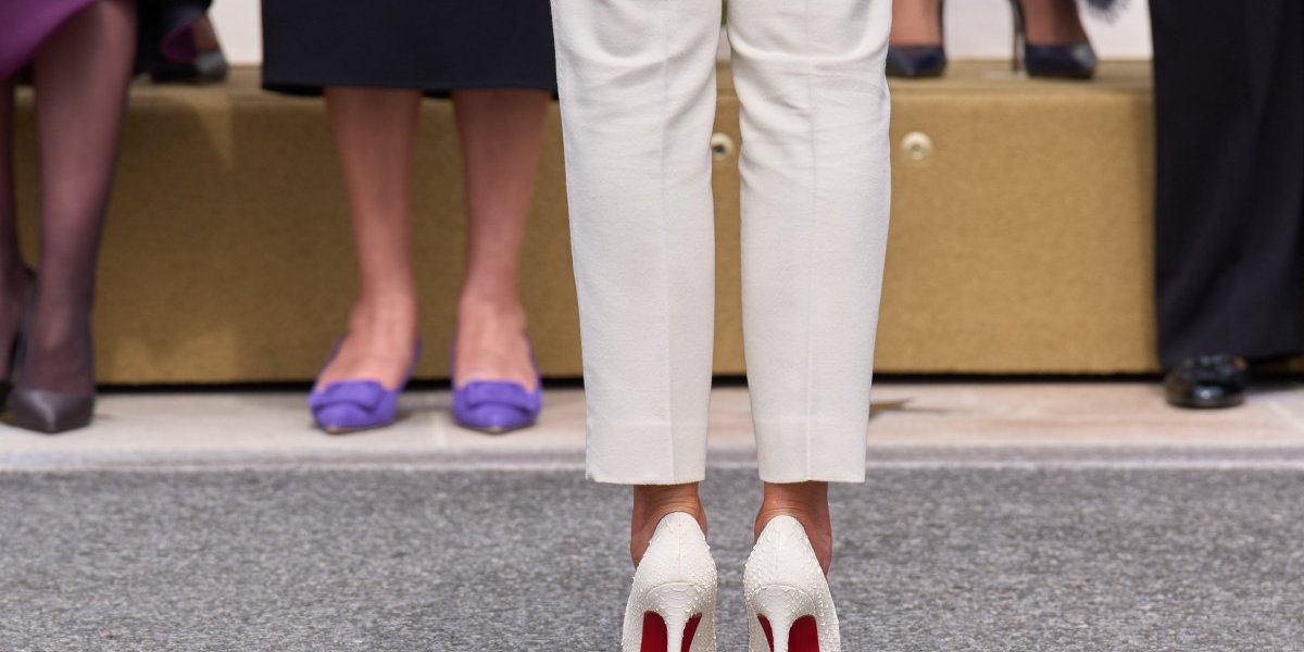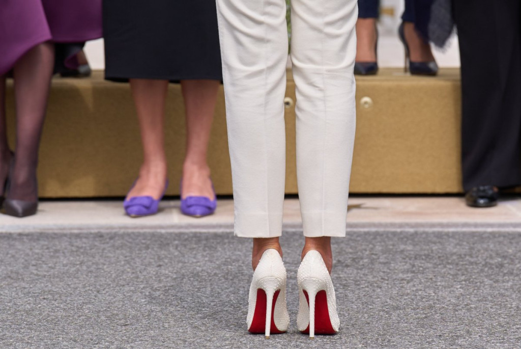 Posebnu pažnju ukrale su luksuzne salonke sa prepoznatljivim crvenim đonom, simbol glamura koji se ne viđa svaki dan u zvaničnim prostorijama Bele kuće.