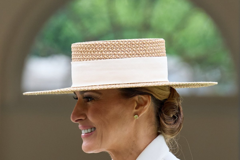 Jučerašnjim izborom garderobe, Melanija je podsetila na svoj stajling iz 2018. godine, kada se sastala sa tadašnjom prvom damom Francuske, Brižit Makron. Tada je njen veliki beli šešir privukao ogromnu pažnju svetske javnosti, koja se u međuvremenu navikla na to da ona često bira ovakav modni detalj.