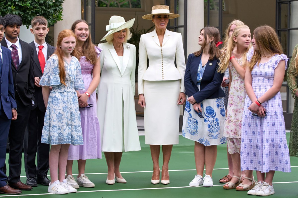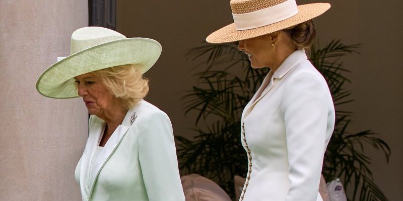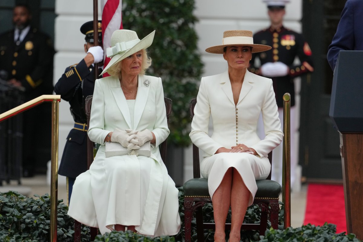 S druge strane, Kamila se opredelila za belu kaput-haljinu modne kuće "Anne Valentine", čije je kreacije nosila i prilikom jučerašnjeg susreta sa Melanijom. Upotpunila je izgled šeširom, elegantnim rukavicama, torbom i salonkama, koji su dodatno naglasili celokupan utisak.