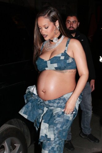 Rijana je takođe nosila deo kolekcije brenda Luj Viton ali u teksas varijanti. Otkrila je trudnički stomak, a društvo joj je pravio partner ASAP Roki, koji je obukao šorts i košulju, kao i ogromne pufnaste papuče.
