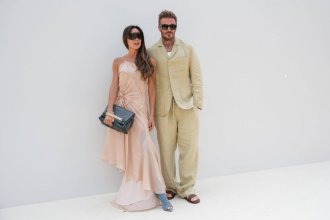 I poput mnogih muškaraca ovog leta, Dejvid je klasične cipele zamenio za sandale, dok je Viktorija, sasvim suprotno, odabrala neobične, dugačke, plave čizme. Ponela je i efektnu crnu torbu.