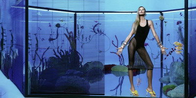 Zgodna i dugonoga Brazilka odabrala je minijaturne modele kupaćeg kostima. Tako je na jednoj fotografiji u crveno-crnom kariranom kupaćem kostimu. Donji deo ovog klasičnog bikinija se vezuje na bokovima tankim trakama, a gornji deo sastoji se iz trouglova koji prekrivaju grudi.