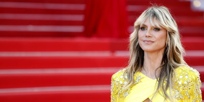 Zgodna Hajdi Klum odlučila se za usku mini belu haljinu. Haljina je sezala do vrha butina, a uz nju je manekenka obula veoma visoke bele čizme sa štiklom.