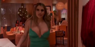 Šantel se za tu posebnu priliku odlučila za zelenu mini haljinu koja je imala veoma dubok dekolte istučući njeno bujno poprsje. Kreacija je išla tik uz telo, pa su i duge noge ove Tiktokerke kao i savršena linija došli do izražaja. Ova dama je uz zelenu atraktivnu haljinu uparila zlatne sandale dok ju je prijateljica snimala. Niko se nije nadao da će svega neki minut kasnije uslediti prava katastrofa.