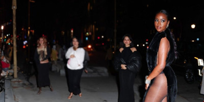Hip hop pevačica Džastin Skajer pojavila se na otvaranju YSL prodavnice u Njujorku u krznenoj bundi i hulahopkama, a zahvaljujući ogromnom šlicu sa strane videlo se da osim njih nema ništa ispod.