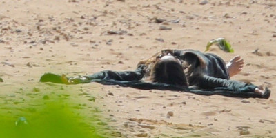 Sunčano vreme opustilo je glumicu koja je viđena kako se obučena izležava na pesku, priča, smeje sa prijateljima i ispija vino.