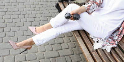 Potpuno bela odeća je prihvatljiv izgled i nije namenjena samo mladama ili lekarima. Da ne biste izgledali dosadno, kombinujte nekoliko sličnih nijansi bele (od mlečnobele do tona slonovače) i odaberite modne dodatke u neutralnim bojama. Ove sezone moderne su sandale sa resama, a one će izgledati neodoljivo ako ih kombinujete sa uskim belim farmerkama.