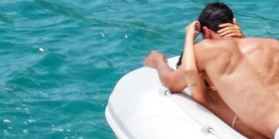 Na slikama koje su procurile, Džejms pokazuje svoju prezgodnu građu dok leži preko Vitorije u malom brodiću, navodno je ljubeći.