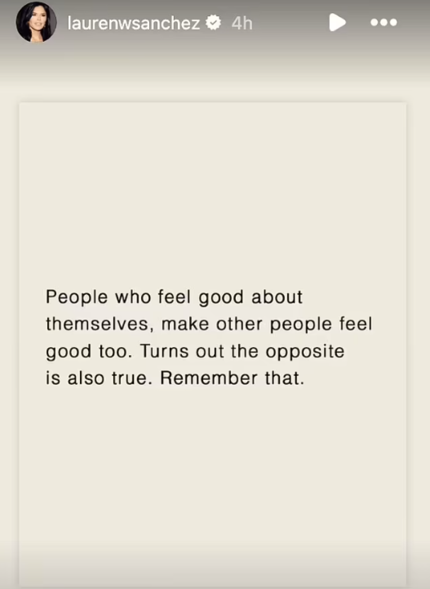 Loren je sada odlučila da odgovori na negativne komentare vezane za njen odvažan izgled. Na svom Instagram storiju, u subotu ujutro, podelila je citat koji se odnosio na to kako ljudi koji se dobro osećaju u svom telu utiču na druge. Citat je glasio: