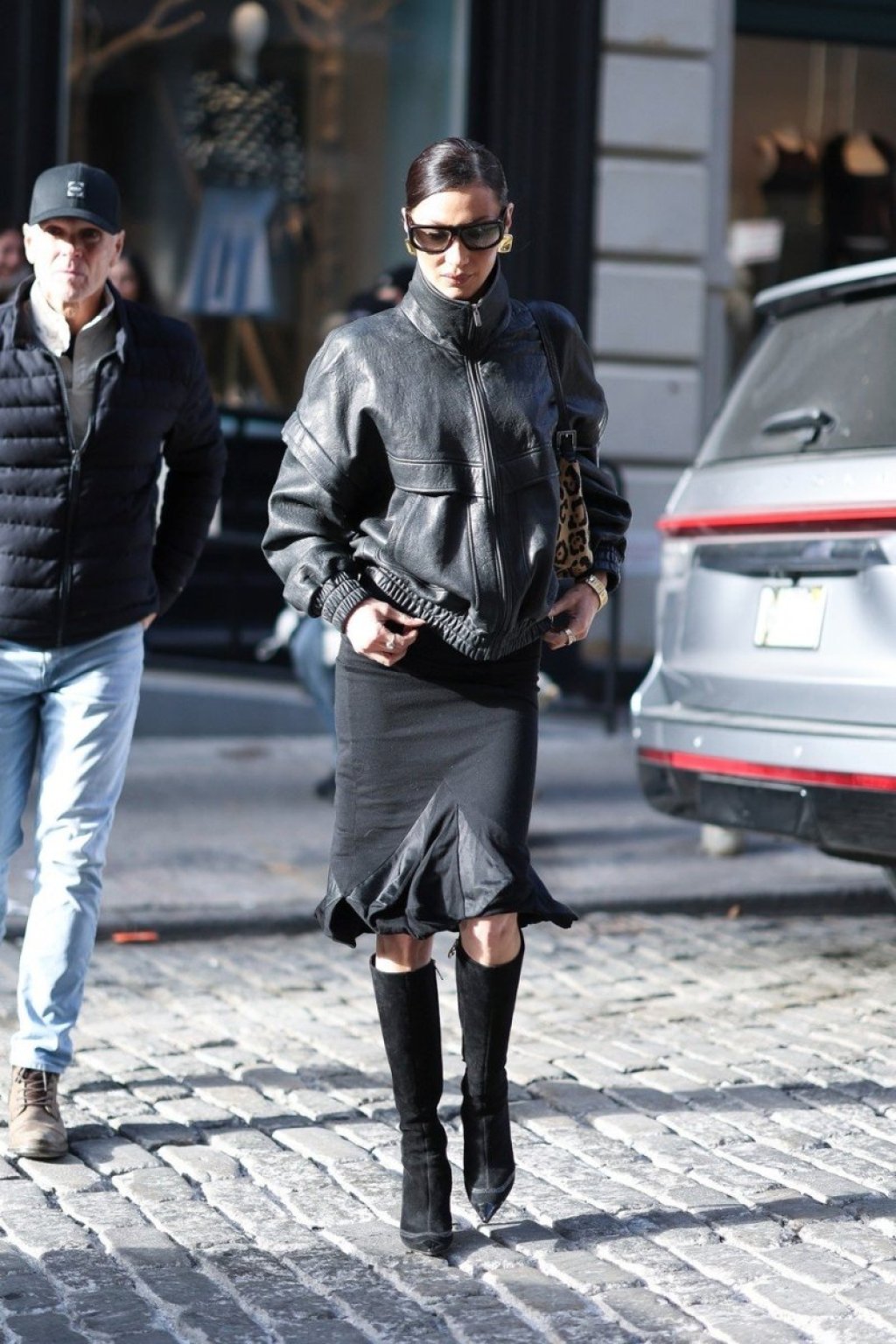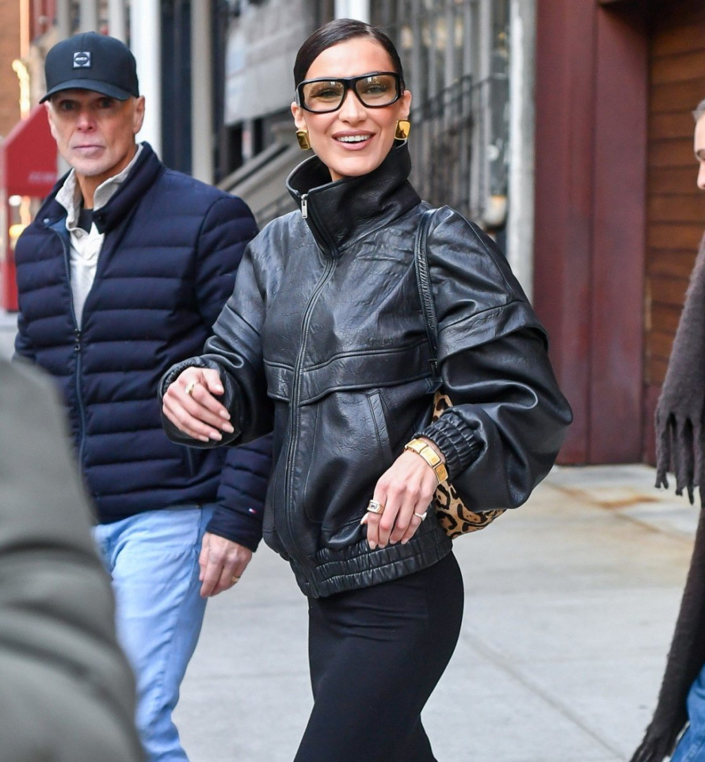 Bela Hadid ponovo je potvrdila status modne ikone kada se u nedelju pojavila na ulicama Njujorka, privlačeći pažnju u upečatljivoj crnoj bomber jakni od kože.