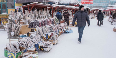 Na lokalnoj pijaci, prodavci prodaju smrznutu ribu, obučeni u tople zimske kombinacije. Prodavaci ističu kako je najvažnija stvar pravilno se obući i redovno piti topao čaj kada se izlazi napolje.